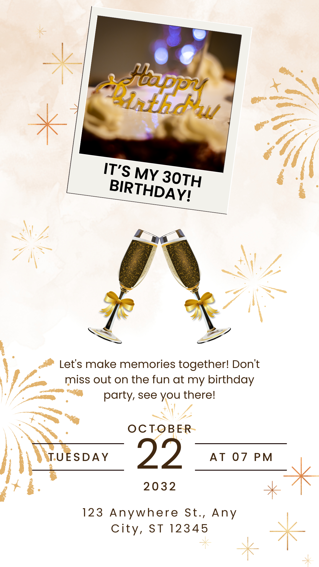 Simply choose your favorite birthday invitation template, customize the text, colors, and images, and download it — no design experience needed!